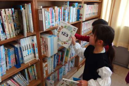 図書室の本を借りる2年生。AI
