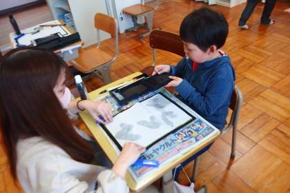 特別支援学級の書写の授業です。