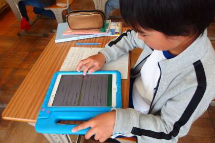 SDGs関連の調べ学習をタブレットを使って進めていました。
