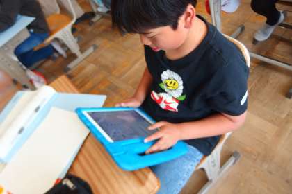 SDGs関連の調べ学習をタブレットを使って進めていました。