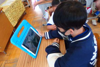 タブレットのアプリで復習をする4年生です。