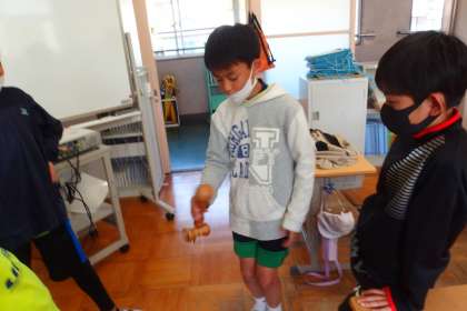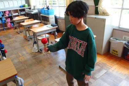 5年生の教室ではけん玉が人気です。