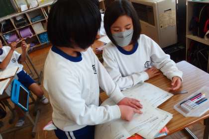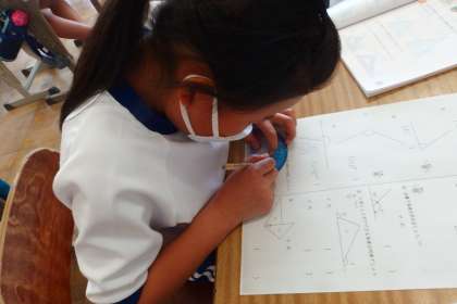 4年生の算数の授業です。 教え合い、学び合いの活動も見られました。