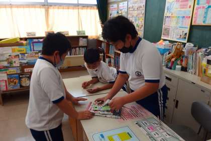 図書システム用のパソコンを操作して、貸し出しや返却の手続きの仕事をする図書委員です。