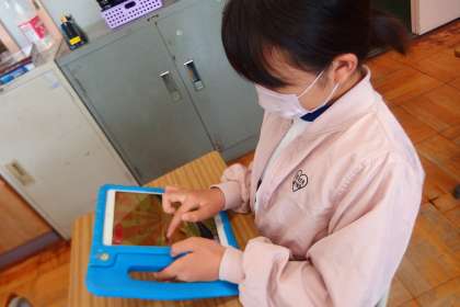タブレットとのアプリで復習をしているところです。