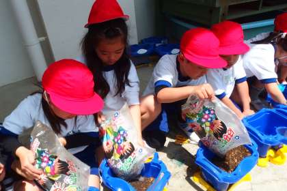 土を入れ、種をまき、水をあげるなど、初めてのことばかりでドキドキでした。