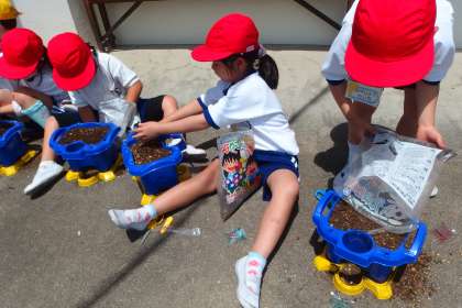 土を入れ、種をまき、水をあげるなど、初めてのことばかりでドキドキでした。