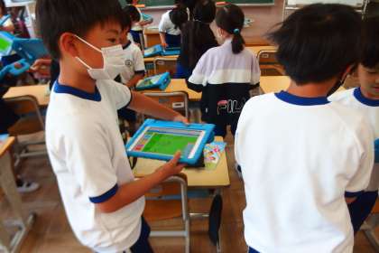 5月10日の東広瀬小学校(9) 公開日 2023/05/11 更新日 2023/05/11 活動の様子 3年生の外国語活動の授業です。 あいさつ英会話をいろいろとお試しの2回目です。 会話が終わったあとは、お互いのタブレットにサインをしました。