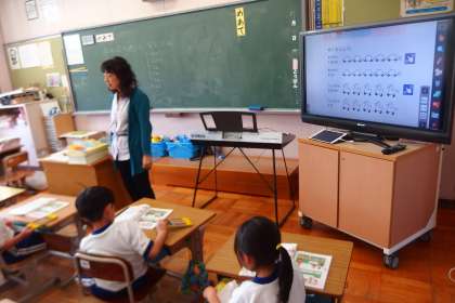 1年生の算数の授業です。 デジタル教科書から示される問題の指示で学びを進めていました。