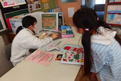 図書システム用のパソコンを操作して、貸し出しや返却の手続きの仕事をする図書委員です。