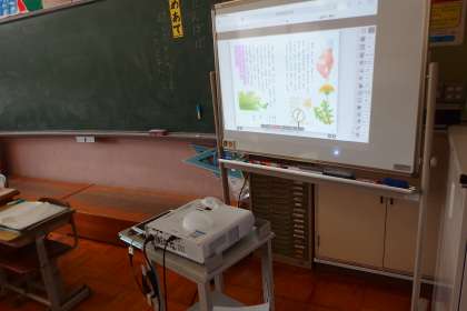 タブレットからデジタル教科書を映し出しています。
