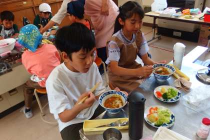 5月12日の東広瀬小学校(35) 公開日 2023/05/14 更新日 2023/05/14 活動の様子 家庭科の授業で5年生が調理実習を行いました。 キャンプで作るカレーを調理しました。 キャンプは石野連合3校での活動です。 学校を越えた支え合い、学び合いの行事です。