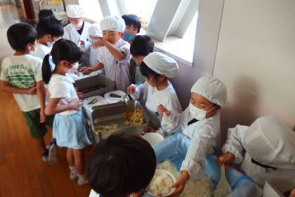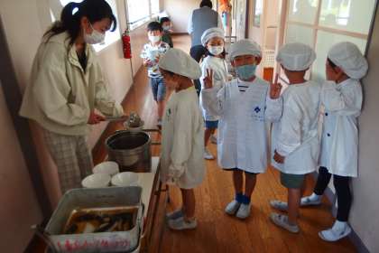 5月12日(金)の給食の配膳の様子です。