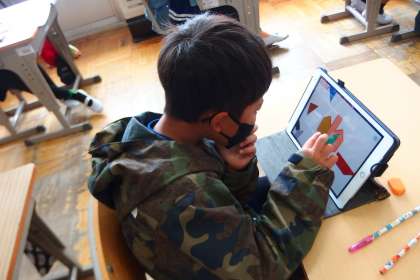 タブレットのアプリで復習をしている5年生です。