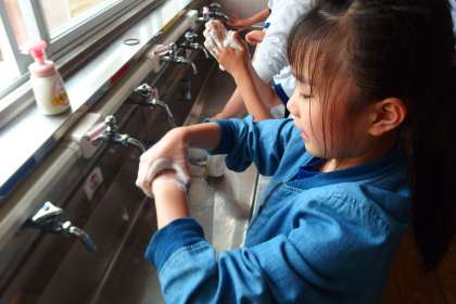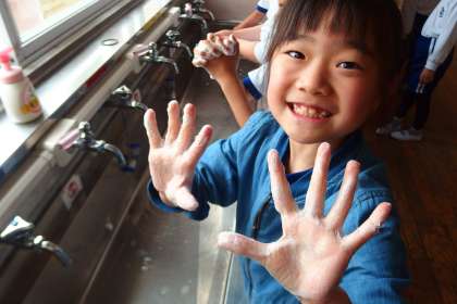 給食の前にはしっかり手洗い。