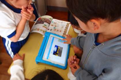 もうすっかりタブレットを使いこなしていて、アサガオの栽培記録が始まろうとしています。