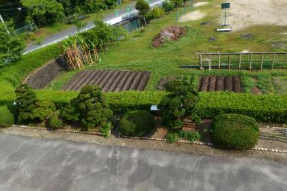 先生たちで耕したサツマイモ畑に、公務手さんがきれいに畝を作ってくれました。