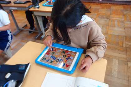 タブレットのアプリでアルファベットを学習しています。