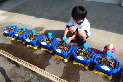 5月18日の東広瀬小学校(5) 公開日 2023/05/20 更新日 2023/05/20 活動の様子 アサガオの栽培は順調です。 朝から水やりをしに来ている1年生です。 雨水貯留タンクからじょうろに水を入れたり、どのくらいの量の水をあげるか相談したりしている姿は、これも学び合いのひとつの形です。