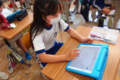 デジタルドリル(Qubena)に取り組む4年生です。
