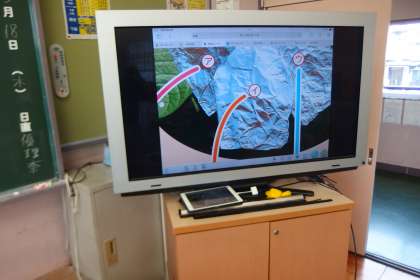 観察の準備の仕方をタフレットから電子黒板に映し出して説明していました。