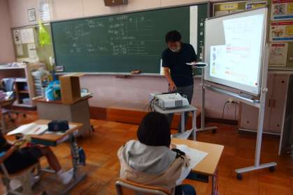 スクリーンに映し出しているのはデジタル教科書です。