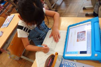 5月19日の東広瀬小学校(30) 公開日 2023/05/23 更新日 2023/05/23 活動の様子 2年生の図工の授業です。 完成した作品をタブレットで撮影し、発表ノートでお互いが見られるようにして、鑑賞をし合っていました。