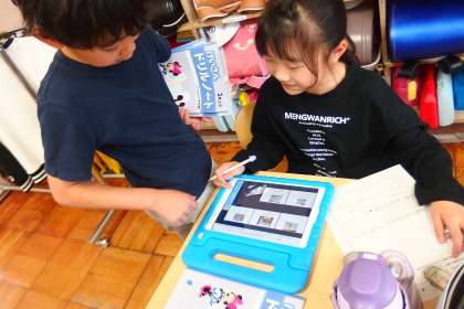 5月19日の東広瀬小学校(32) 公開日 2023/05/23 更新日 2023/05/23 活動の様子 2年生の図工の授業です。 完成した作品をタブレットで撮影し、発表ノートでお互いが見られるようにして、鑑賞をし合っていました。
