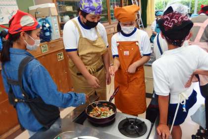 グループで助け合い、支え合い、学び合いの調理実習でした。