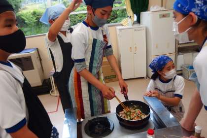 グループで助け合い、支え合い、学び合いの調理実習でした。