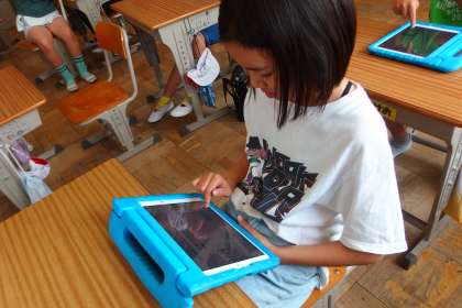 タブレットでデジタルドリル(Qubena)に取り組んでいるところです。