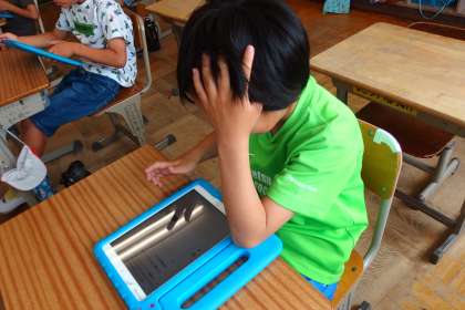 タブレットでデジタルドリル(Qubena)に取り組んでいるところです。