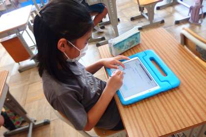 タブレットでデジタルドリル(Qubena)に取り組んでいるところです。