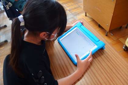 タブレットでデジタルドリル(Qubena)に取り組んでいるところです。