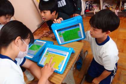 タブレットを使ってコミュニケーション活動をしました。