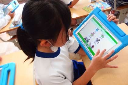5月23日の東広瀬小学校(22) 公開日 2023/05/25 更新日 2023/05/25 活動の様子 3年生の外国語活動の授業です。 一人一人がタブレットを使って、基本表現の読み方を練習しています。 自分に合う進度で練習を進める個別最適な学びを目指して方法を工夫中です。