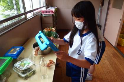 5月23日の東広瀬小学校(30) 公開日 2023/05/25 更新日 2023/05/25 活動の様子 アオムシの観察を続けている3年生です。 タブレットで熱心に様子を記録しています。 アオムシはサナギになりつつあります。