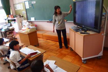 5月23日の東広瀬小学校(34) 公開日 2023/05/25 更新日 2023/05/25 活動の様子 1年生の国語の授業です。 先生が読み上げるデジタル教科書の説明をみんなで確認しながら進めていました。
