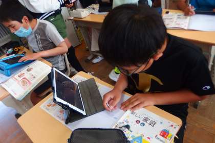 タブレットのアプリで旬の食材について学習していました。
