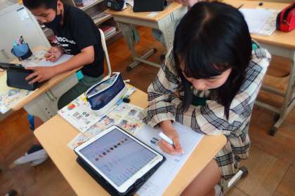 タブレットのアプリで旬の食材について学習していました。