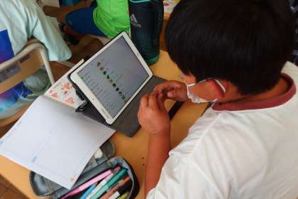 6年生の家庭科の授業です。 タブレットのアプリで旬の食材について学習していました。