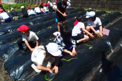 秋の収穫、焼きいもパーティーまで、ファミリー班で助け合い、教え合い、学び合いの縦割り津道を進めていきます。