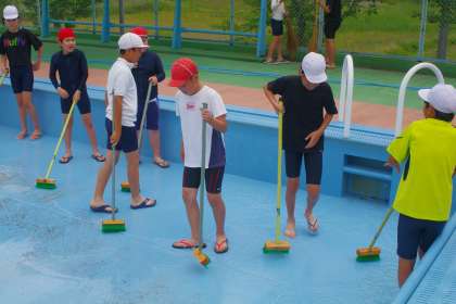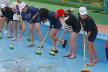 プールそうじをしました。