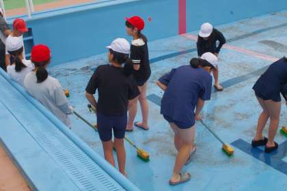 プールそうじをしました。