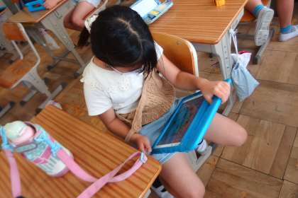 タブレットに健康観察を入力しているところです