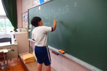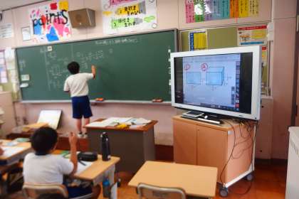 6年生の算数の授業です。 デジタル教科書から映し出されている問題をみんなで考えていました。