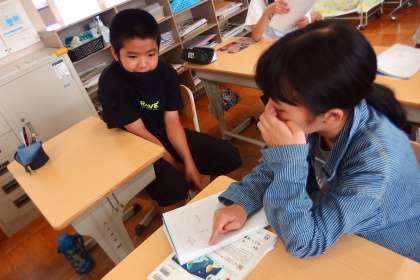 6月1日の東広瀬小学校(11) 公開日 2023/06/03 更新日 2023/06/03 活動の様子 6年生の算数の授業です。 分数の計算の解き方を、お互いに教え合い、学び合いで理解を深めていました。