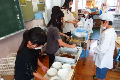 今日の4年生の給食の配膳の様子です。