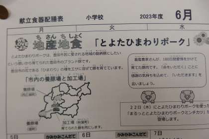 今月の給食献立表に載っている「地産地食」情報です。