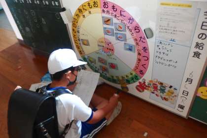 給食の献立情報や栄養情報を記入している保健給食委員です。